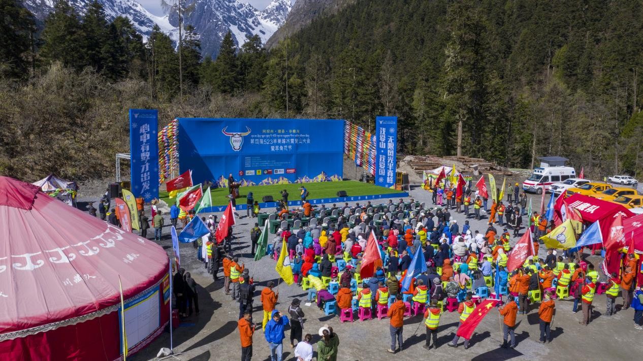 5月20日,第四届523半脊峰冰雪登山大会暨羊角花节开幕式在山花烂漫的阿坝州理县毕棚沟景区举行,来自全国各地的登山爱好者将向半脊峰发起冲锋。