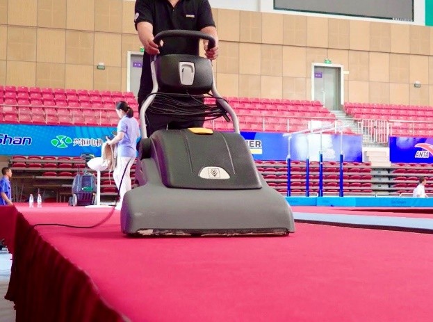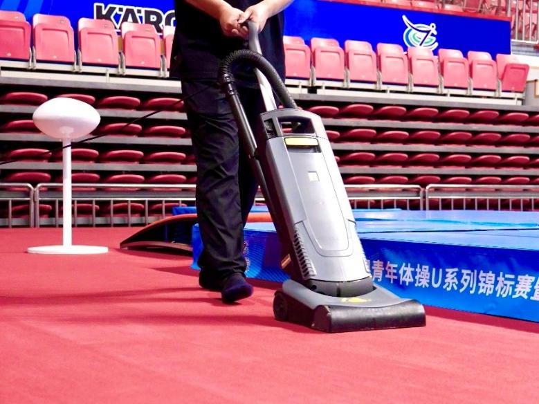 开赛前,卡赫清洁专家们对场馆内外进行了实地考察,并针对本次赛事制定了针对性的清洁解决方案。由于体操项目的特殊性,比赛场地往往会铺设大量地毯,而在比赛过程中,运动员需要在手上擦镁粉来增大摩擦系数。如果没有及时清理散落在地毯上的镁粉,不仅有碍场地的美观,还会影响选手的发挥以及比赛的安全性。作为全球最大的清洁设备和清洁解决方案提供商,德国卡赫携众多便捷灵活、性能高效强悍的专业清洁设备来到德州,为赛场内外的众多区域提供全场景专业清洁服务,竭尽全力守护跃动赛场。