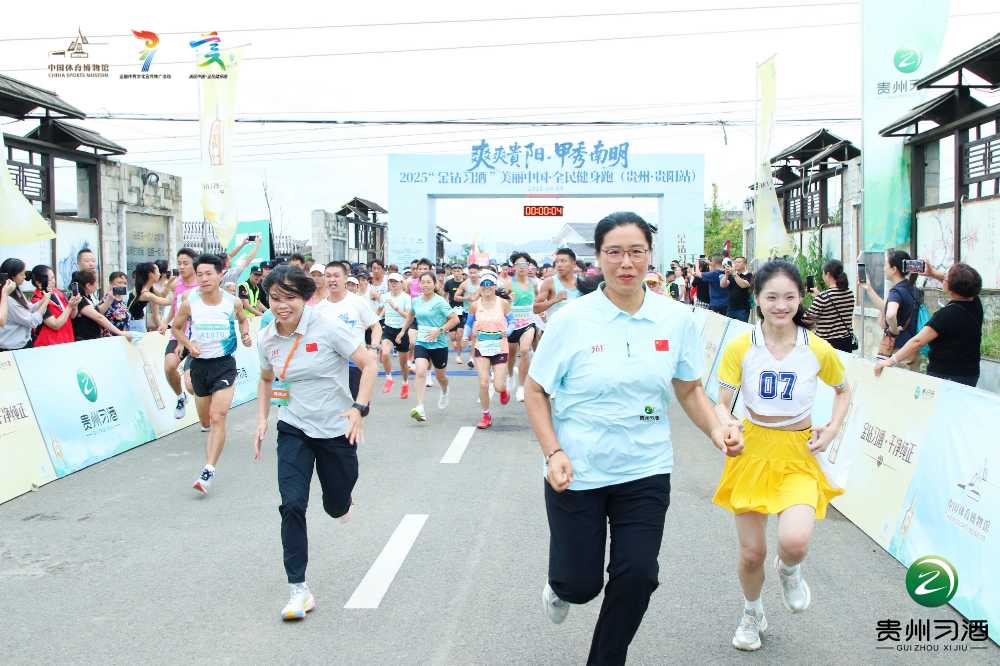 8 月 9 日,2025 全国体育文化宣传推广活动暨 “金钻习酒” 美丽中国・全民健身跑(贵州・贵阳站)在南明区永乐乡万亩桃林热力开跑。本次活动由国家体育总局体育文化发展中心、贵州省体育局、中国体育博物馆、中国奥林匹克博物馆联合主办,贵州省体育文化宣传信息中心、贵阳市体育局、南明区人民政府承办,贵州习酒投资控股集团有限责任公司支持,南明区文体广电旅游局协办。3000余名来自各地的跑步爱好者齐聚这片果香四溢的田园,在奔跑中释放激情,更让 “金钻习酒 干净纯正” 的品牌理念与乡村振兴的时代强音在此共鸣。