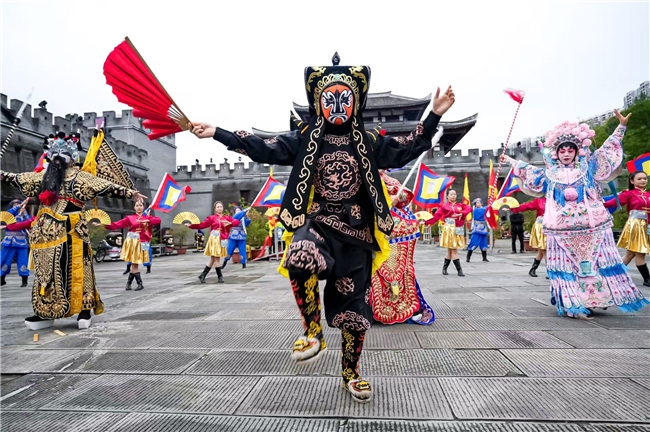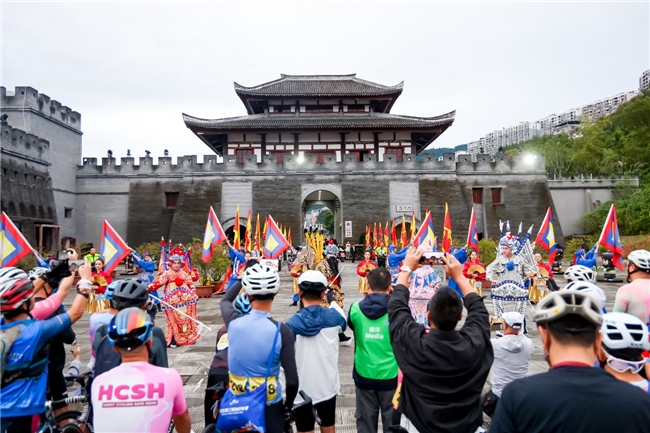 10月18日,2025环三峡自行车赛第二站云阳站顺利完赛。晨曦微露,张飞庙广场率先上演了多场精彩演出,京剧、川剧双绝并立,戏歌新唱、快板、金钱板、翻筋斗、变脸等多种表演形式惊艳全场,让参赛选手得以近距离感受巴渝文化
