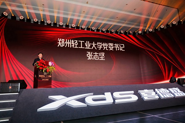 郑州轻工业大学党委书记张志坚作为校企合作与人才培养的代表致辞,他深情回顾了喜德盛与郑州轻工业大学多年来在产学研融合、人才共育方面的坚实合作历程。张志坚指出,喜德盛为高校学子提供了丰富的实习实践平台和科研转化支持,深度参与行业人才培养体系的构建,为自行车产业输送了一批批兼具专业知识和实践能力的青年人才,生动诠释了企业社会责任与长远发展相结合的理念。
